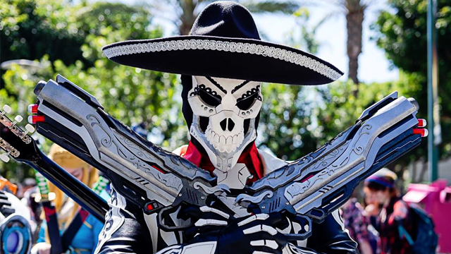 Reaper channels his inner Sugar Skull in his Mariachi skin. The costume is amazingly detailed. From the brim on the hat to the weathering on the guns, each of the details adds to the realism of this costume. The mask is perfectly crafted, giving off that Sugar Skull vibe while still being domineering.