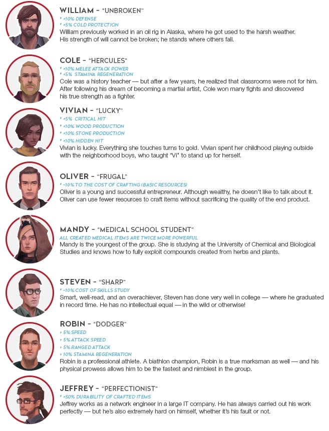 The Wild Eight is a top down survival, action/adventure game that is being compared to Diablo, Don’t Starve, Lost and the Liam Neeson movie, The Grey. Its eight characters have survived a mysterious plane crash and have found themselves in the Alaskan Wilderness — and it is completely devoid of any civilization. There are no radio communications and the characters are forced to wait in the hopes of a rescue. In the meantime, they need to learn how to survive against aggressive wild animals, starvation, and the freezing cold.