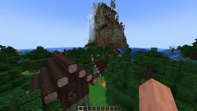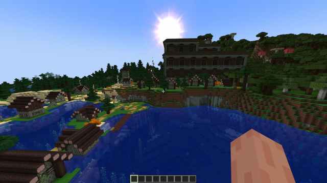 This seed places a mansion right in the middle of the village. The construction and colors match the houses well, making it a perfect fit that doesn’t stand out too much. There are also some giant mushrooms on the hillside that add some flair to the scenery.