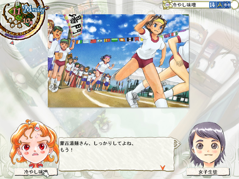 Raising the girl, who is now effectively your daughter, is a complicated affair. She has a slew of stats that must be lowered and raised via work around town, schooling, random events, socializing, equipment and items, and adventuring. You must choose her monthly schedules based on the stats you want her to work on, what she’s innately good at, and her stress levels.