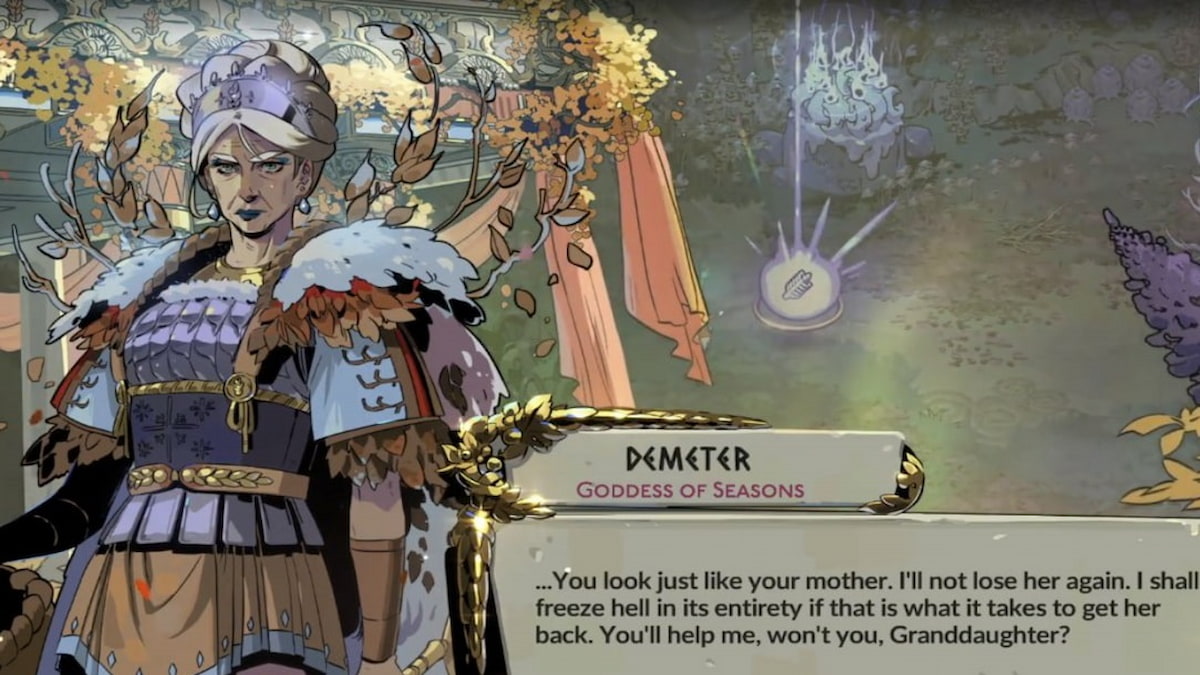 While we have confirmation from the trailer and the above Demeter screenshot that Melinoe is the daughter of Hades and Persephone, there’s also an alternative theory that could have been fun to explore. We get mentions of Melinoe from one of the Orphic Hymns that are loosely ascribed to Orpheus. In this hymn, we see Melinoe as an underworld goddess or nymph. Her various associations include the harbinger of souls, bringer of nightmares, goddess of madness, and commonly also mentioned as a witch trained by Hecate. That said, there’s an interesting tidbit about her parentage. In one passage of this hymn, it’s mentioned: