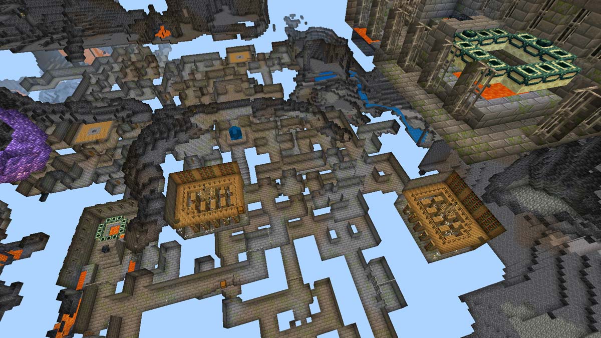 In a similar fashion, you can find an entire exposed stronghold and an abandoned mineshaft right under the snow village at coordinates X: -872 Z: -392. No digging is required; just drop down and take all the loot you can. Just beware of those pesky hostile mobs, as they’re everywhere in there.