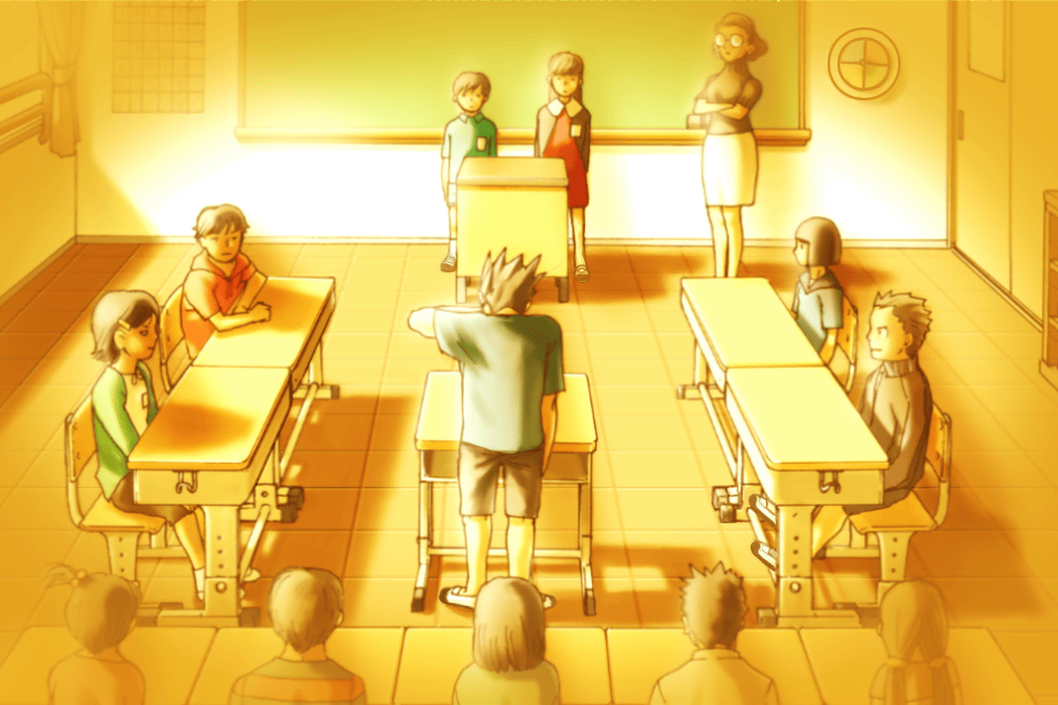 In the first game, a flashback to Phoenix’s childhood explains the reasoning behind why he became a lawyer. He was wrongly accused of stealing another classmate’s lunch money and was put on “trial,” which led to a young Edgeworth and Larry standing up for him against the rest of the class.
