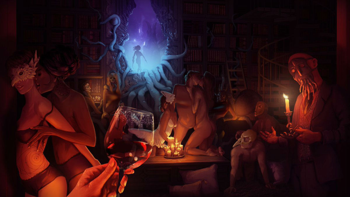 While the promo imagery makes it clear that sexuality intertwined with the occult and BDSM will play a key role, it obviously must be toned down or off-screen enough that Steam will still let the game be sold, so it's not quite clear just how far the game will really go.
