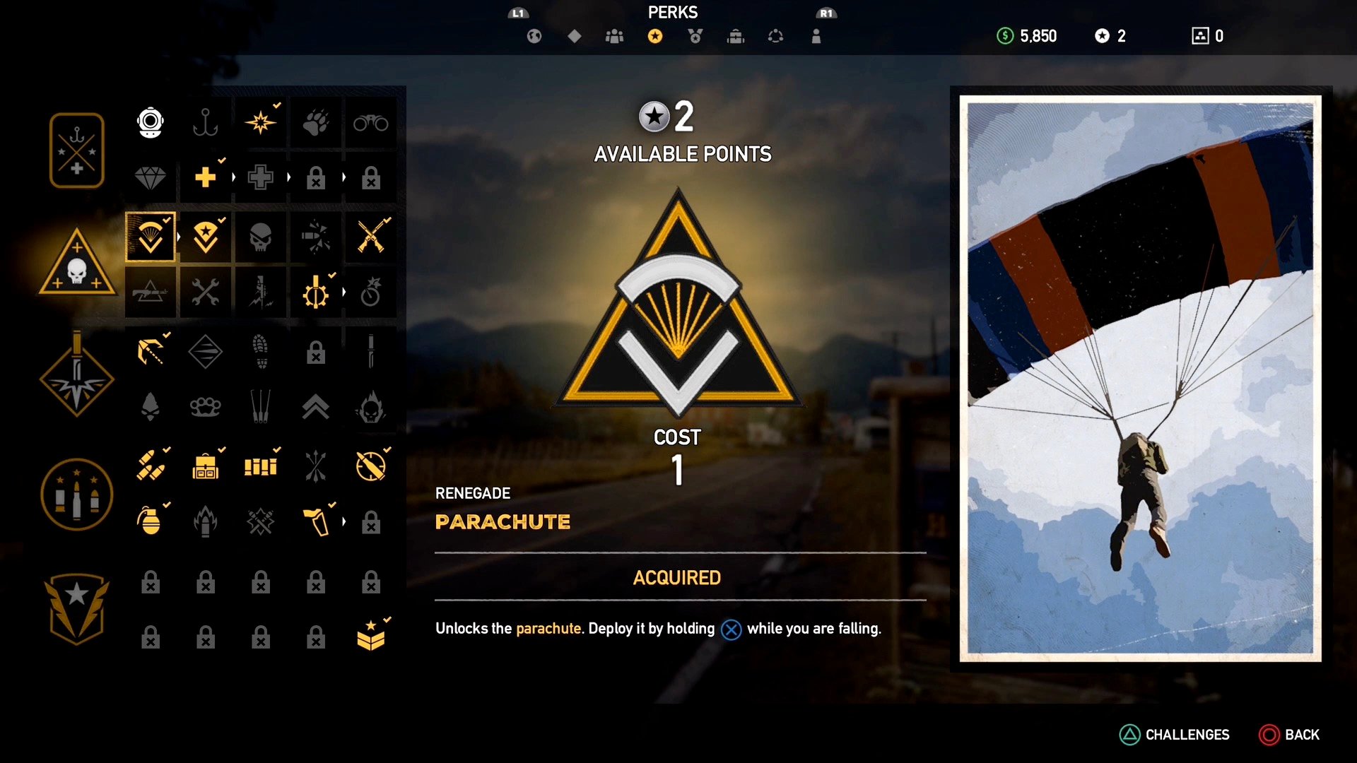 In past games, you would gain EXP from killing enemies, hunting, and taking on missions so that you could level up and unlock abilities. Gone is EXP, now replaced by perks. By doing various challenges, you gain perks that can be used to unlock various skills and upgrades, like lockpicking, using parachutes and wing suits, and holding an additional gun or two. It helps that most challenges are kept to killing an enemy with a certain gun, stealth killing, and so on. It's simple, easy, and a fun way to help you diversify your play style.