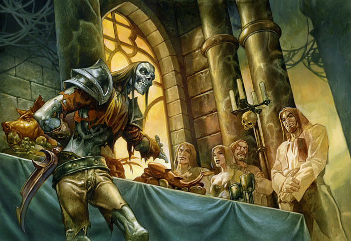 When living, Moroes acted as steward for the powerful Archmage and Guardian of Tirisfal, Medivh. Since his death at Medivh's hands, he has become a twisted undead reflection of his former self, either by Medivh/Sargeras' influence or the dark magic polluting the tower of Kharazan. He continues to act as steward of the shattered tower, heralding the arrival of his master. Whether he refers to Medivh, or Sargeras himself remains to be seen.