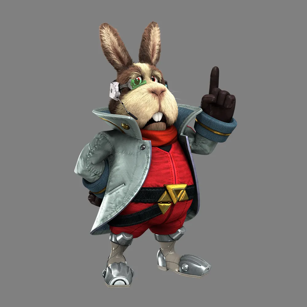 Peppy Hare is a retired member of the Star Fox team. He was a mentor, and a sort of father figure to Fox McCloud after Peppy witnessed Fox’s dad’s death. He is remembered for his quote “Do a barrel roll!”.