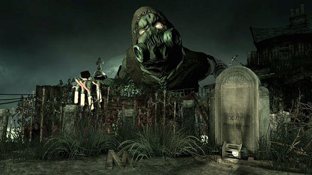 Eventually, Joker shoots the Batman and the game treats the player as if they had just died and re-spawns them into a graveyard surrounded by caged and insane Batmen. In his toxin induced psychosis, Batman manages to fight off Scarecrow on his psychological battleground and is forced to fight inmates through the lingering hallucinogenic effects of Scarecrow's chemical cocktail.