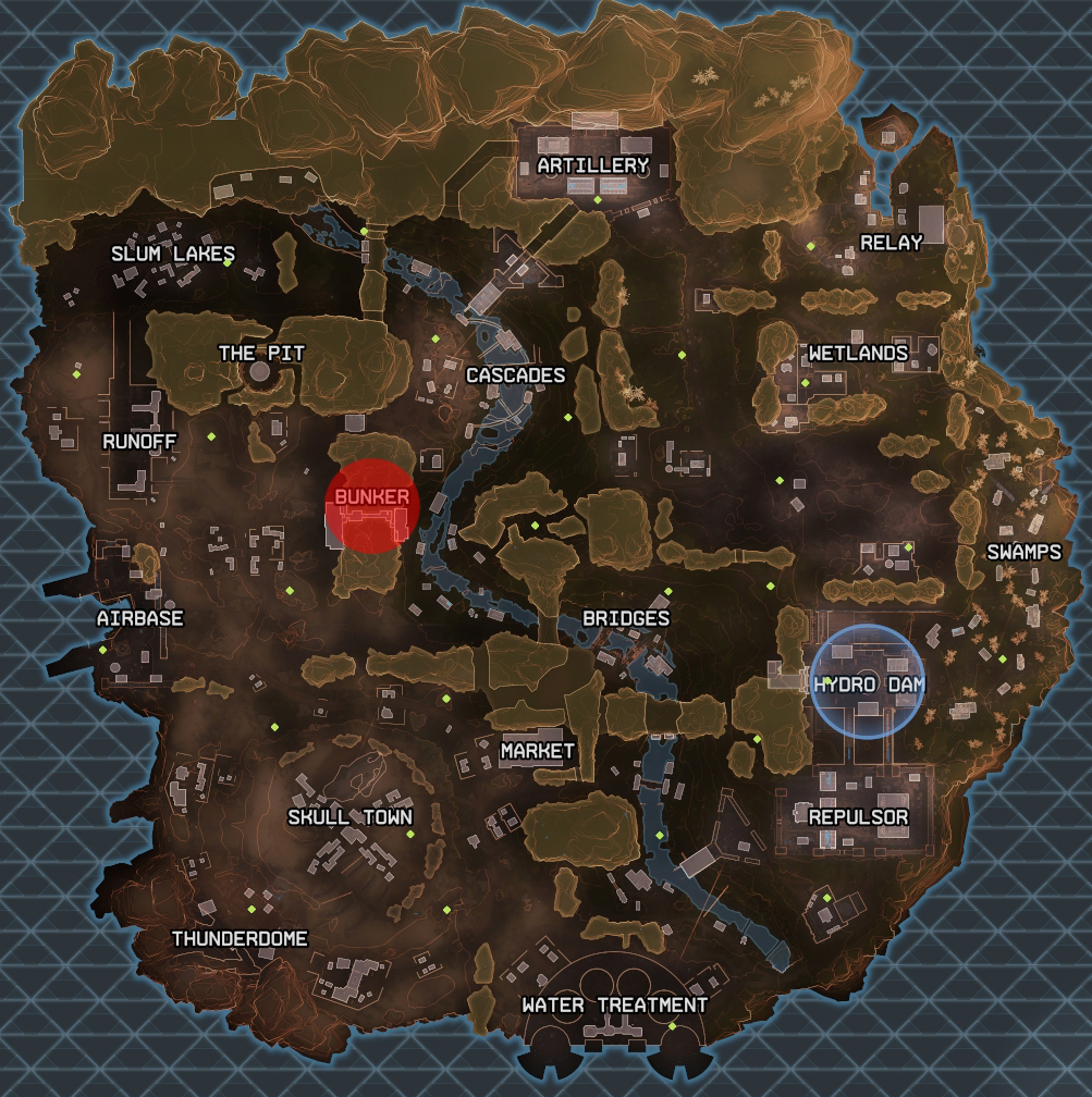 Compact locations aren't always good places to land at, since these types of locations always serve as the hot spots for early shootouts. Bunker is exactly this type of a place, and it is located in the middle of the map. But it also has some of the finest loot in Apex Legends, so consider checking it out.