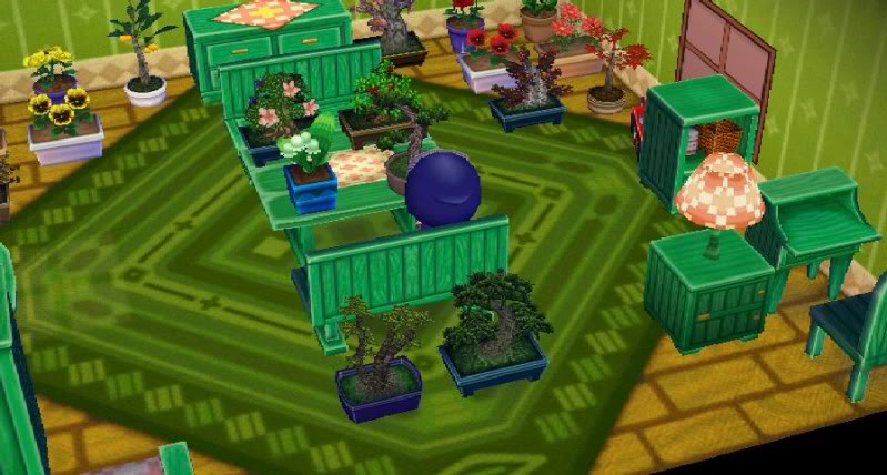 Garden furniture is another broad and somewhat nebulous set. There’s a wide assortment of garden-ish things, like (garish) flower chairs, some bamboo stuff, a pond, and such. The Welcome Amiibo update introduced some more items clustered around more of a theme. They’re nice, but like the Ranch and Cabin sets, it’s more like a show garden.