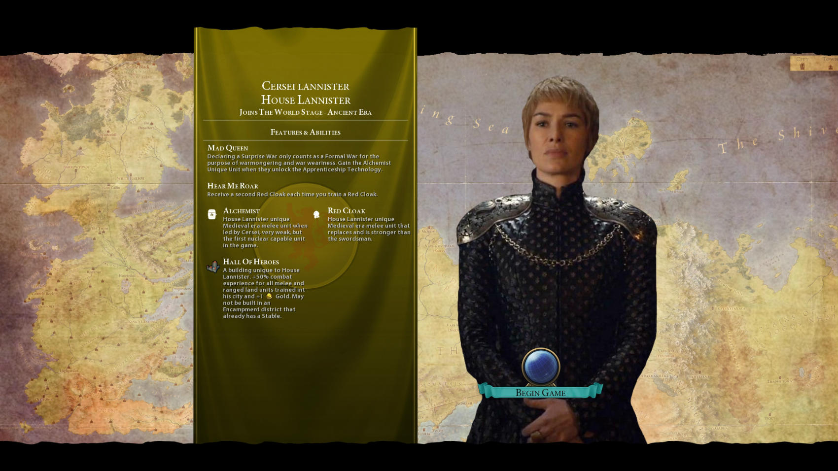 A Civ Of Ice And Fire replaces the various civilization leaders with characters like Euron Greyjoy and Olenna Tyrell, swaps out city names, and replaces all the various traits and abilities with more Game Of Thrones-appropriate entries.