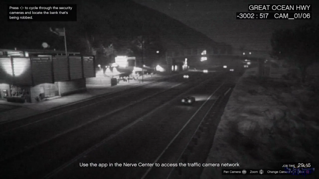 So first, you need to access the Terrorbyte's computer and check out the street cameras. Switch between the cameras to identify the bank that's being robbed. You will see police cars on the outside, so you will know in this way which of the banks is getting robbed.
