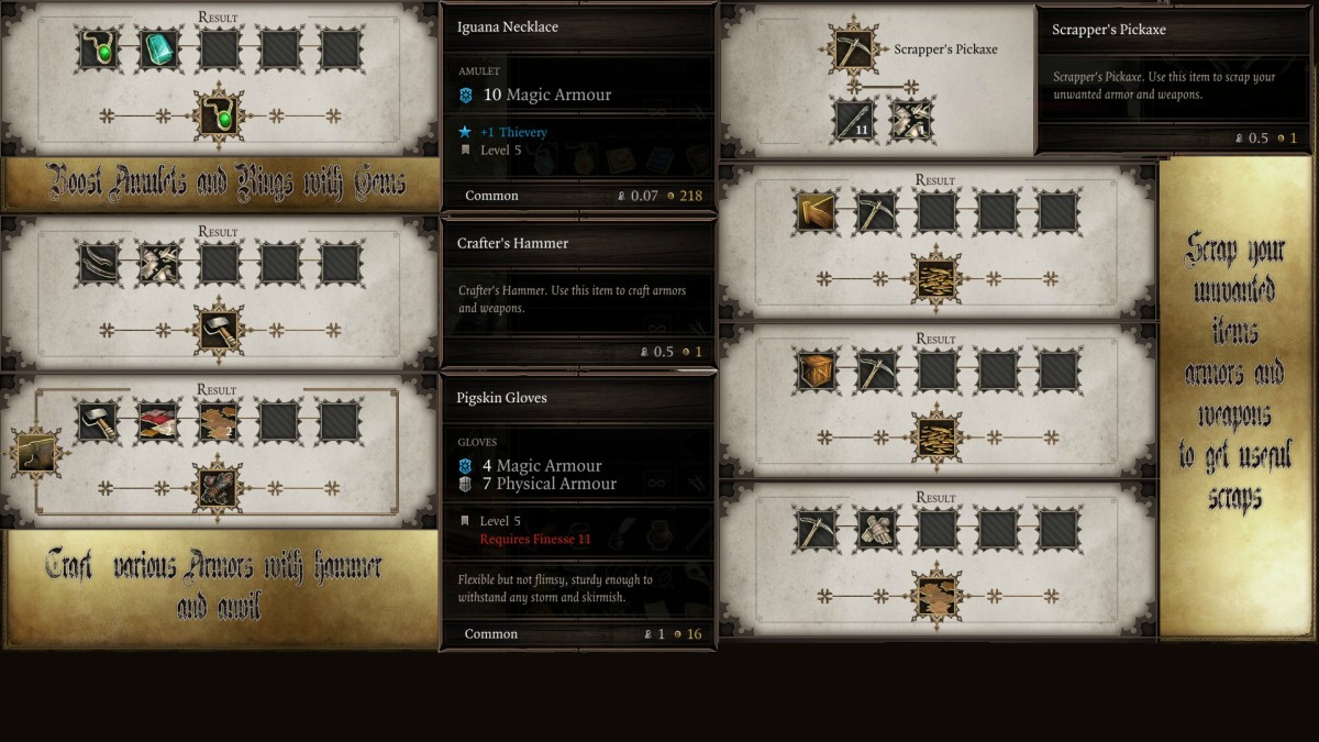 Now all that junk like cracked plates and broken mugs can be turned into useful material, and unwanted old clothing and armor can be broken down into scraps that in turn are used to boost existing armor pieces.