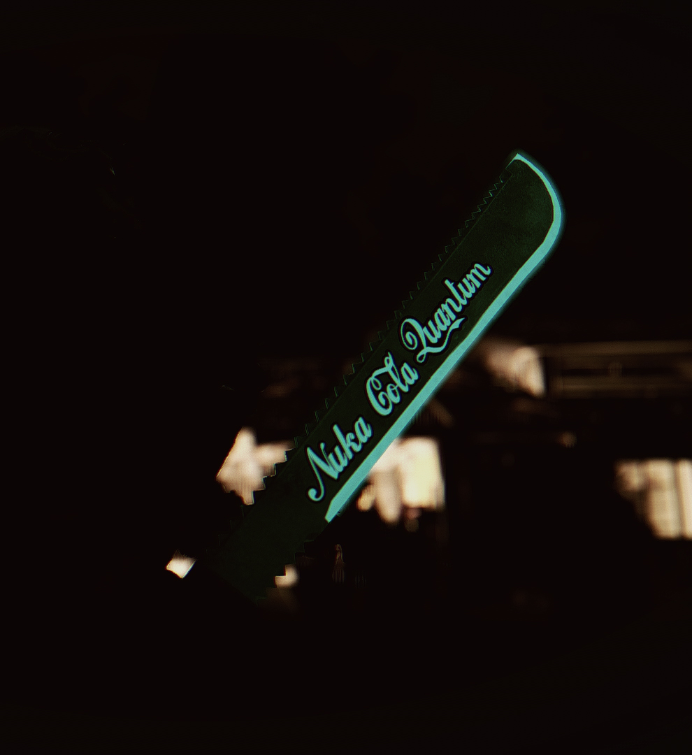 If there was a Jason-type slasher in the Fallout universe, I imagine he’d have an endorsement deal with Nuka Cola. With that in mind, its time to download this custom Nuka Quantum machete (probably equip a hockey mask type head armor as well). High damage output, very fast speed, and it glows in the dark – what more could you want?