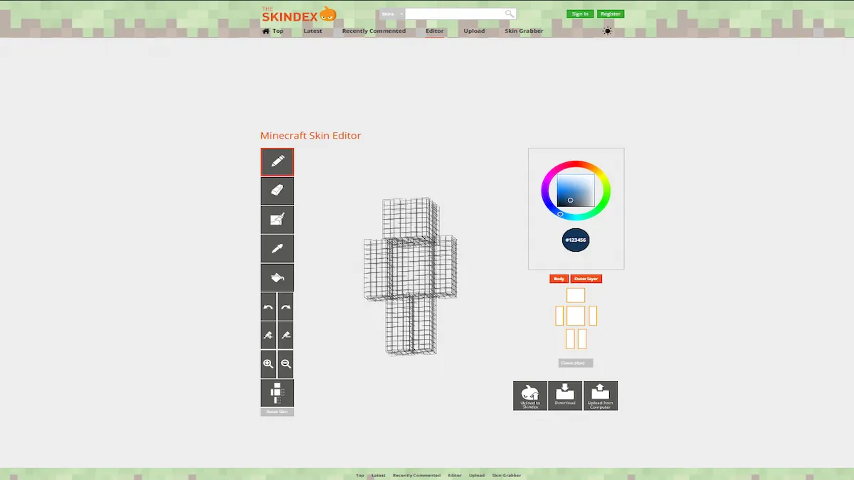 One of the first Minecraft skin editors that will likely come up in your search is Skindex. Not only does it have a grid system to help you color individual squares, but it also lets you rotate a 3D model. Best of all, it can all be done in your browser. It might lack other features found in other editors on this list, but it’s a great editor for both beginners and those more familiar with making custom skins.