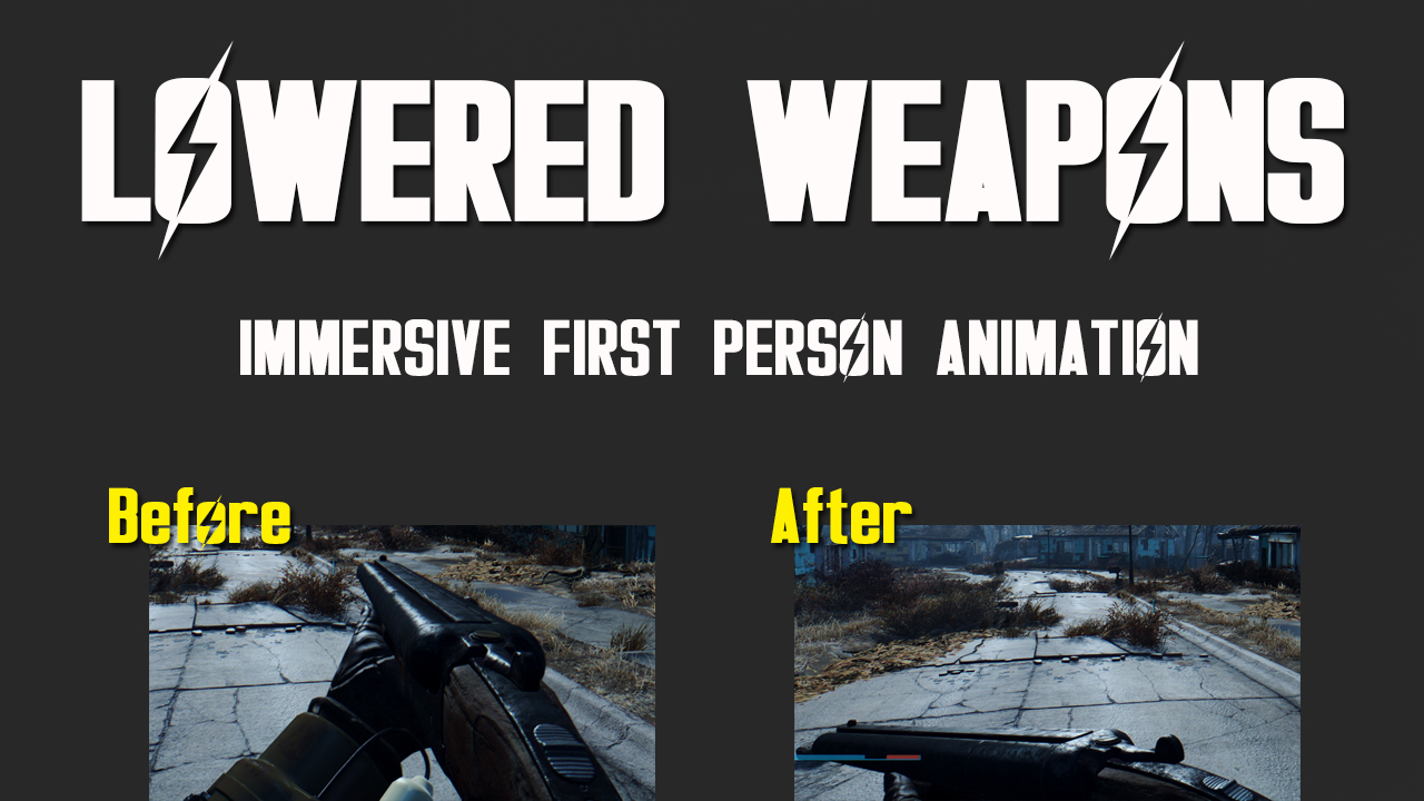If you've played Fallout 4, then most likely you are already familiar with this excellent mod that lowers your weapons when not firing. It's a simple yet very effective animation trick that opens up more space on your screen, which allows you to immerse yourself into the game.
