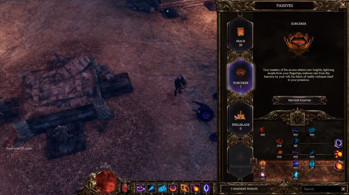 As you can see, the character above started out as a Mage and after some time, I began exploring in the realm of being a Sorcerer. Probably the best thing about this system is that each subclass has its own passive skill tree as well as new spells to be learned.