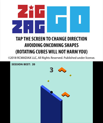 A simple arcade game that will be coming to the Switch in January is Zig Zag Go. You remain stationary on a pillar, and your goal is to avoid the oncoming shapes. The game is simple and should be cheap when it releases on the store this month.