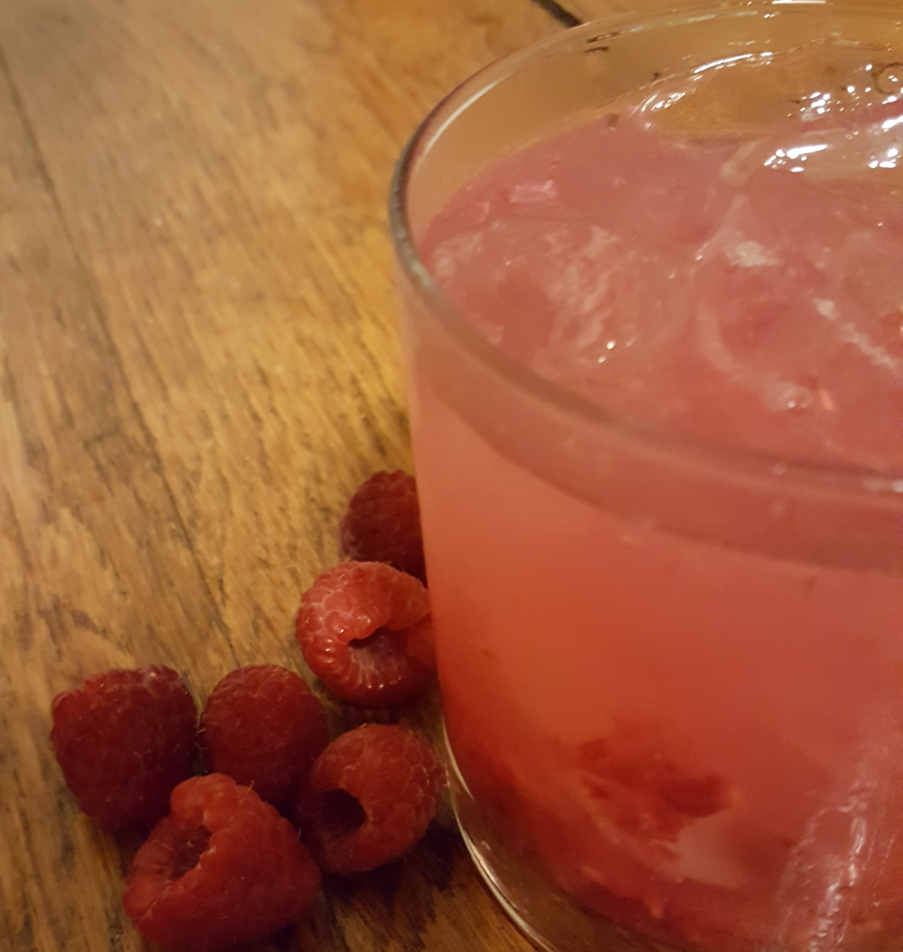 In a rocks glass, muddle a handful of raspberries. Add ice, and 1.5 oz vodka. Cover with soda and stir.