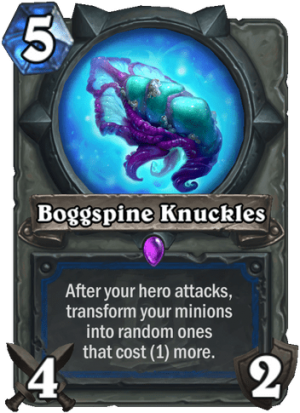 The new Shaman weapon basically produces the same effect, but it's twice as powerful due to its two points of durability. Add Hoard Pillager on top of that, and you will double Boggspine Knuckles' effects.