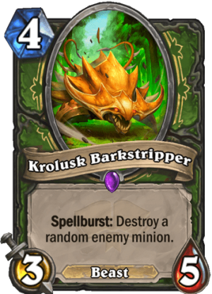 It could be compared to Deadly Shot, a staple card in many Hunter decks, but Barkstripper is even better, as it adds a significant body to the battlefield.