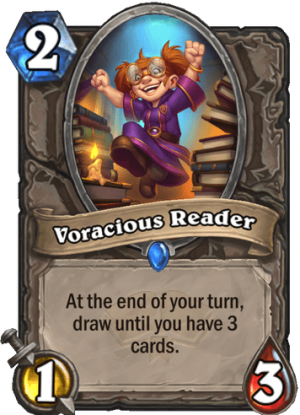 If you've been playing Hearthstone since the Gnomes vs. Goblins expansion, then you should remember a card named Jeeves. It had a very similar effect, but Voracious Reader is much better: it only draws extra cards for you.