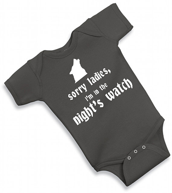 For newborns to 24 months. For those of you who are Game of Thrones fans, we have the perfect, John Snow sanctioned, baby onesie. It comes in 12 different colors including red, turquoise, white, black, and royal. This piece is also handmade using ring-spun combed cotton.