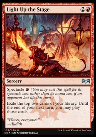 Here's a card that has a very specific home, and that's in Burn decks. Light Up the Stage is perfect for drawing more cards, and it does so for only one red mana with its Spectacle ability triggered.