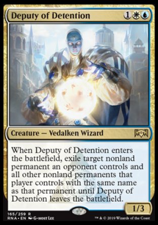 It looks like Wizards of the Coast decided to give Detention Sphere a body. Well, good for them and good for us because it is a lot more fun to play Deputy of Detention than Detention Sphere.