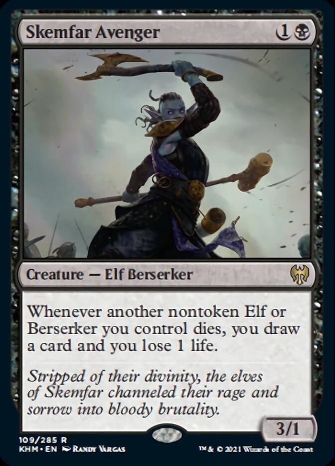 Here is another tribal highlight, but this time only for Elf decks. Since these types of decks always swarm the battlefield with multiple copies, Skemfar Avenger can generate a huge number of card draws.