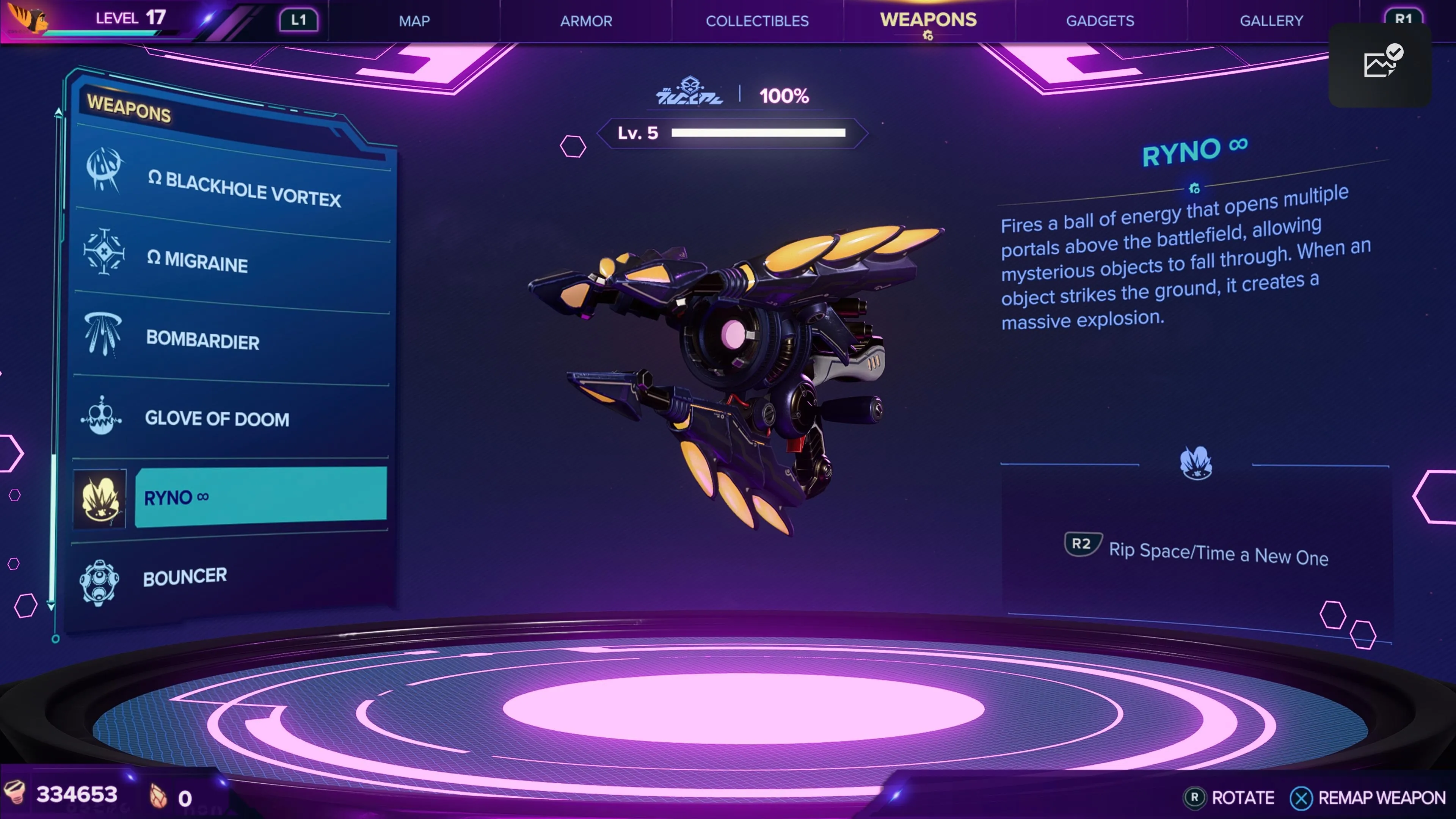 The Ryno 8 can open portals to other dimensions, and as such Insomniac decided this was the place to put all the Easter eggs they could. You'll open dimensions to Horizon Zero Dawn and drop a Sawtooth on top of an enemy. Or watch Jak and Daxter pop out of a portal. Or the Cooper gang's van. It is an endless cycle of fun Easter eggs from PlayStation's past while being the most effective tool of destruction in your arsenal.