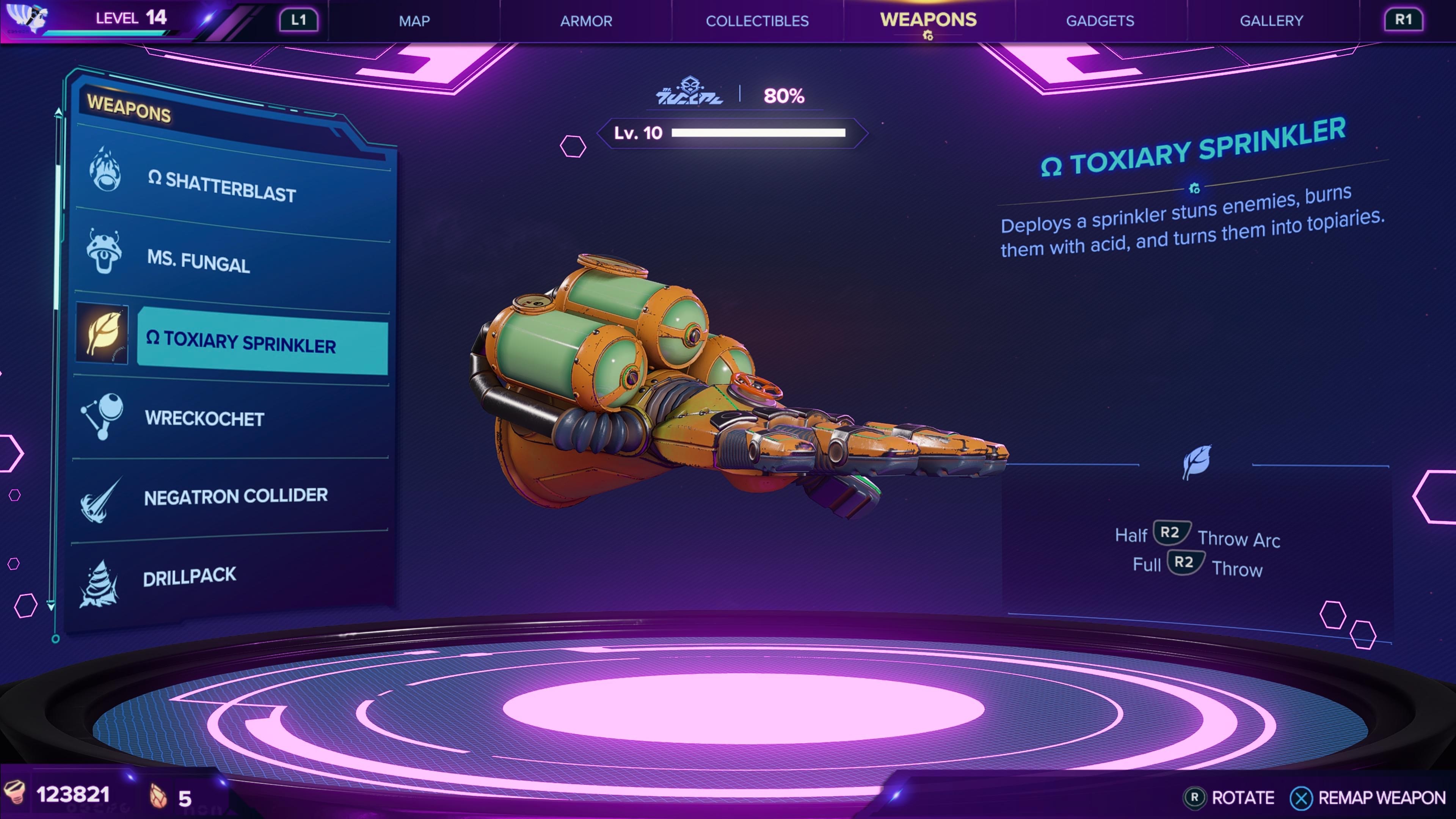 The Topiary Sprinkler is potentially the best passive weapon ever to be introduced in Ratchet and Clank, and I sincerely hope Insomniac brings it back for future titles.