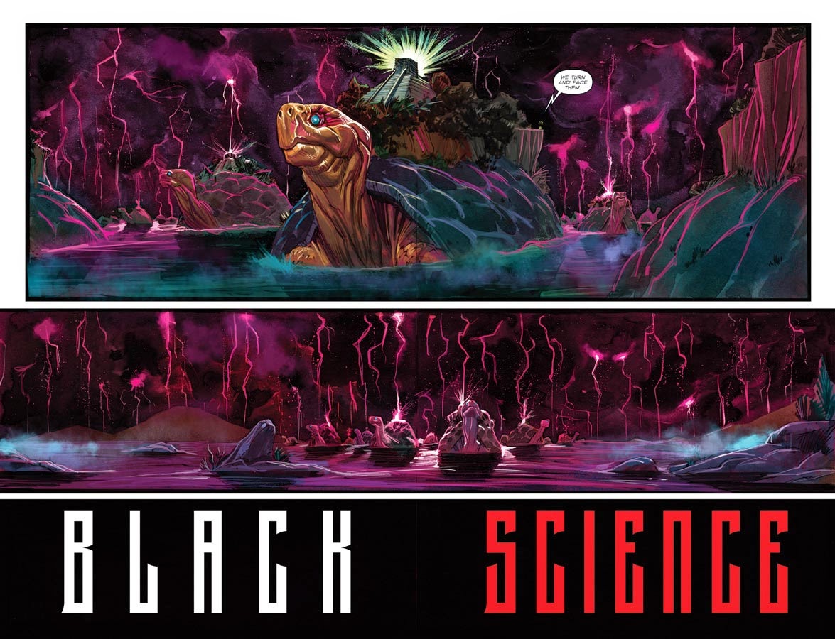 A story that rivals Shutter for its wide-ranging creature options but with a very dark bent, Black Science is essentially a hard R-rated version of that old dimension-hopping TV show Sliders.