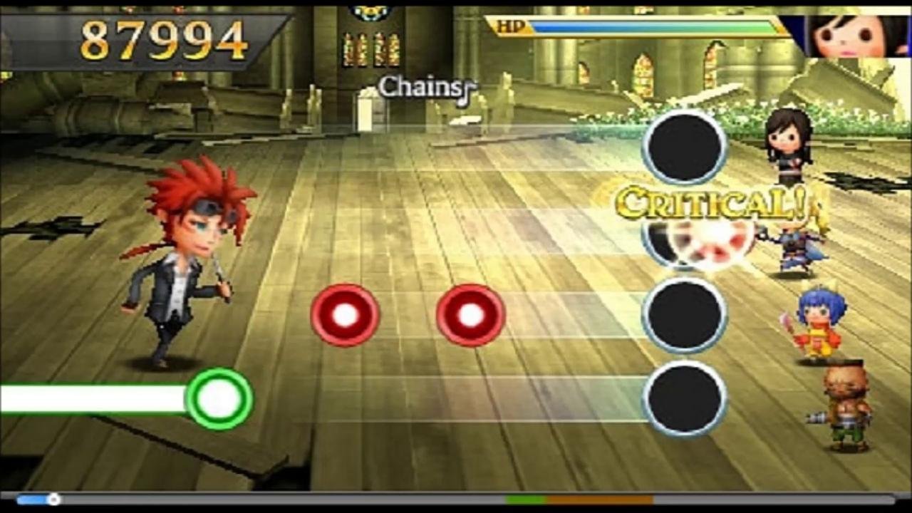 The game includes over 200 classic songs from the Final Fantasy series, and is played by tapping the 3DS stylus in time with colorful nodes lining up with circular shapes on the edge of the screen. It’s quite fun, and spending hours trying to perfect your pecking motion for songs at higher difficulty levels is always satisfying.
