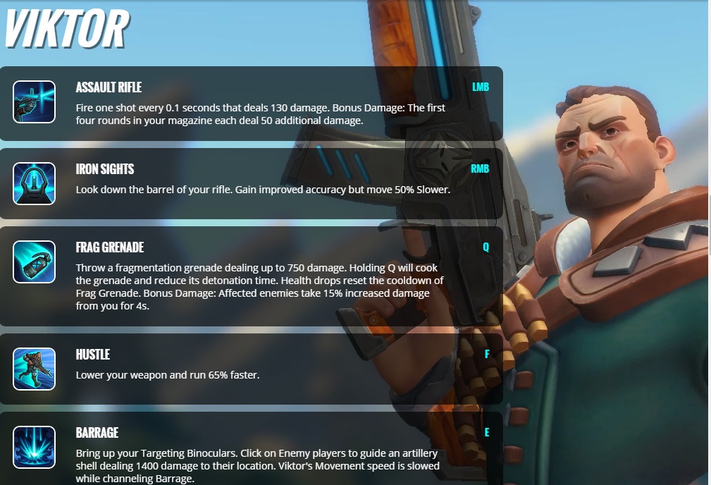 Viktor is a damage champion, and his kit will be familiar to those of you that have played a first person shooter game before. Damage champions gain 100% more Credits for dealing damage to enemy champions, which is great since will be your only job when playing as Viktor.