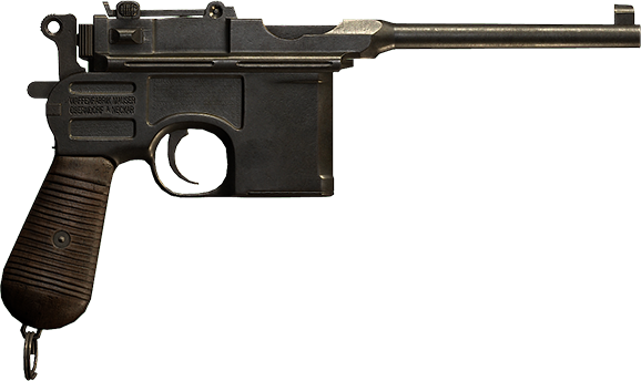 It was nicknamed the “Broomhandle” due to its unusual grip shaped like the handle of a broom, which gives it more stability during fire. Its long barrel and high-velocity cartridge allow for a much superior range and better penetration than most other pistols in Tannenberg.