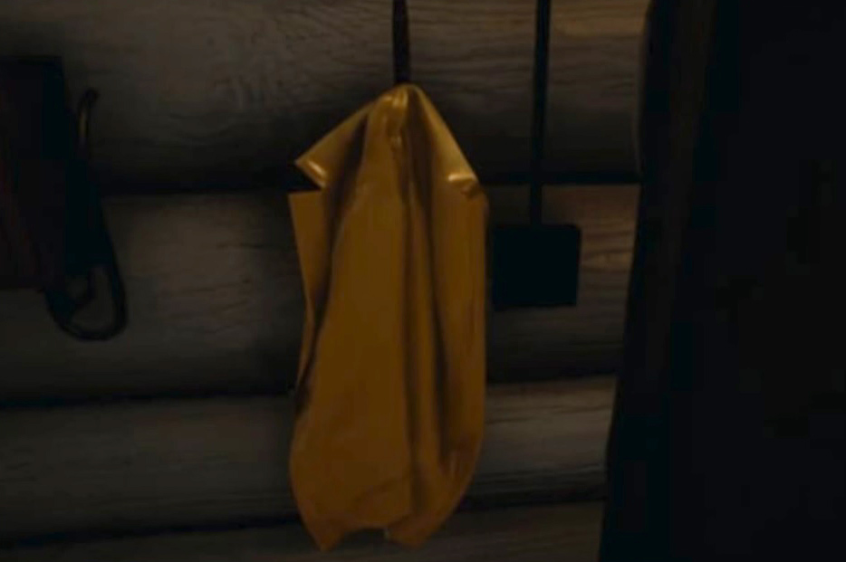 The same yellow raincoat can be seen in the game hanging in one of the cabins. It’s a small reference, but really shows the attention to details.