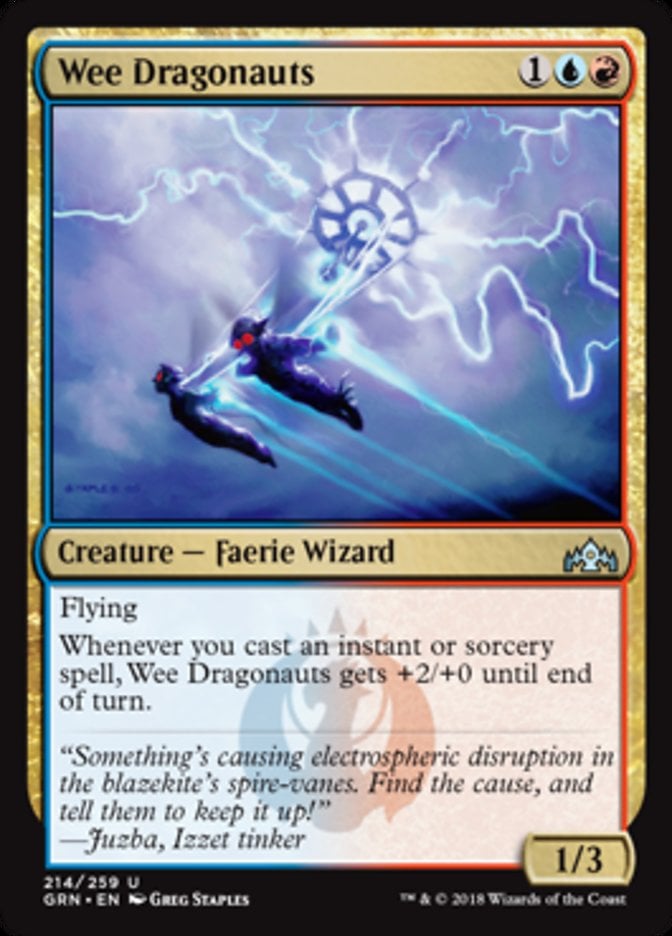 If you prefer to just sit there and burn your opponent instead of attacking with creatures, then you can opt to leave just Wee Dragonauts and Adeliz, and add burn spells, such as Wizard's Lightning, Lightning Strike and Thousand-Year Storm.
