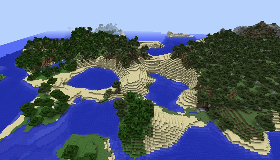 Spawn on the beach of a huge island surrounded by other smaller ones. This survival island seed for Minecraft has forests and lagoons – the place is just gorgeous. The underground and underwater life is just as interesting.