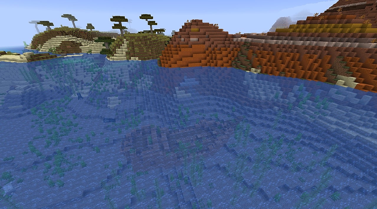 This mesa seed has a double top-tier shipwreck at spawn. The first one can be seen at coordinates 270, -100. It contains the following loot: