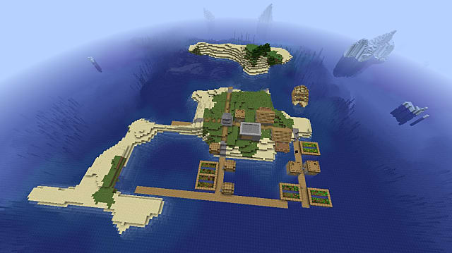 Here, you will spawn on a survival island with lots of wood. The island is completely surrounded with icebergs, and there is an ocean monument inside the iceberg circle.