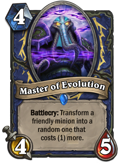 A companion to Evolve spell, this minion puts a solid body on the board in combination with the same transformative effect. It’s like a better version of Recombobulator and it will work great when you don’t have a full board of minions, but for example, only one totem created by the Shaman’s hero power.