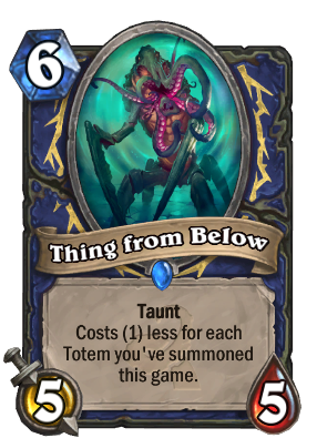 Another overpowered minion for Shaman? Yeah, looks like this class is going places in the new meta. Here’s how you play it for the best effect: turn 2 – Totem Golem, turn 3 – Tuskarr Totemic, turn 4 - Thing from Below with Taunt and no overload.