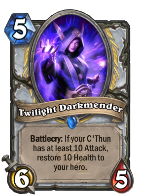 The stats on this minion are already very good in its initial form, but if you manage to buff your C’Thun to at least 10/10, you will get a 4/10 minion for 4 mana, which is very strong. The only other card that is capable of doing the same is Twilight Drake.