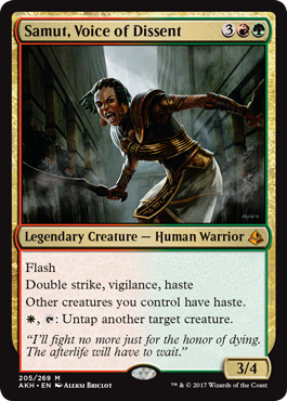 The white ability is not even that important, so if you do play a straight red/green deck, then definitely get yourself Samut, Voice of Dissent.