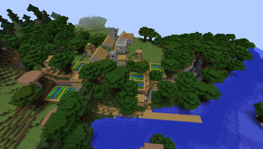Here is a cool Minecraft seed with a village on an island. This one also has a blacksmith with a lot of iron in his chest and several other smaller islands surrounding the main one.