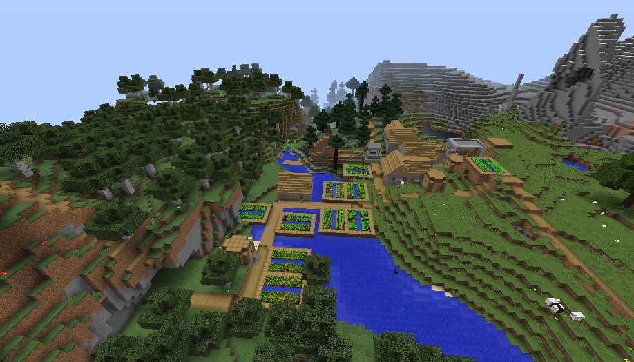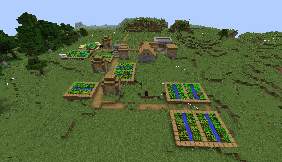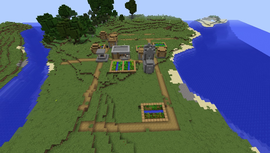 You will spawn in a really flat area and a small village that has a blacksmith with a full armor set inside his chest. Also, there are lots of farms, which is quite unusual for such a tiny settlement.