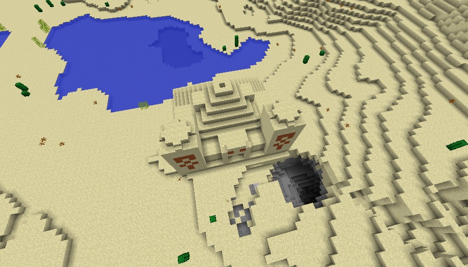 You will spawn not too far away from the mainland’s shore. If you travel to the north, you will encounter a desert with a significant number of desert temples and other structures. Here are the coordinates of the two temples in this area: 223 69 106, -416 75 -997. Both of them keep a lot of nice loot: