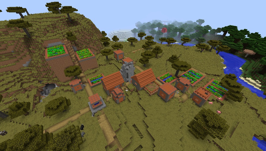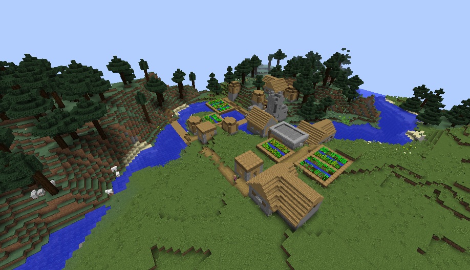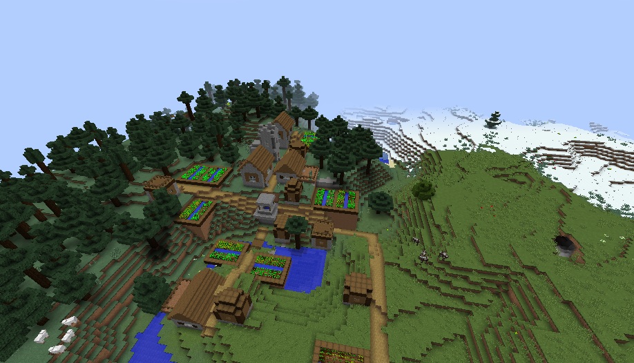 You will spawn in a really flat area and a small village that has a blacksmith with a full armor set inside his chest. Also, there are lots of farms, which is quite unusual for such a tiny settlement.