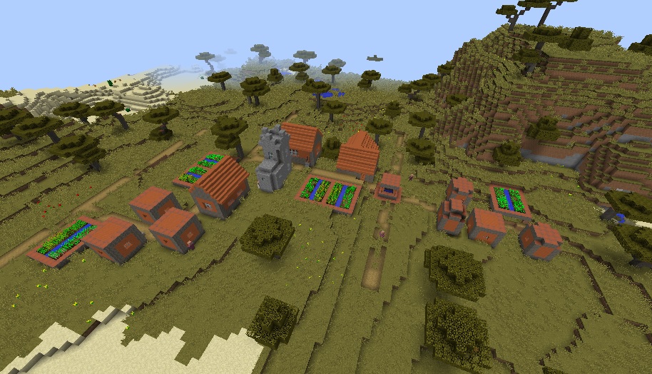 Then, there is also a very small savanna village right at the very end of the desert biome (-3466 66 99).